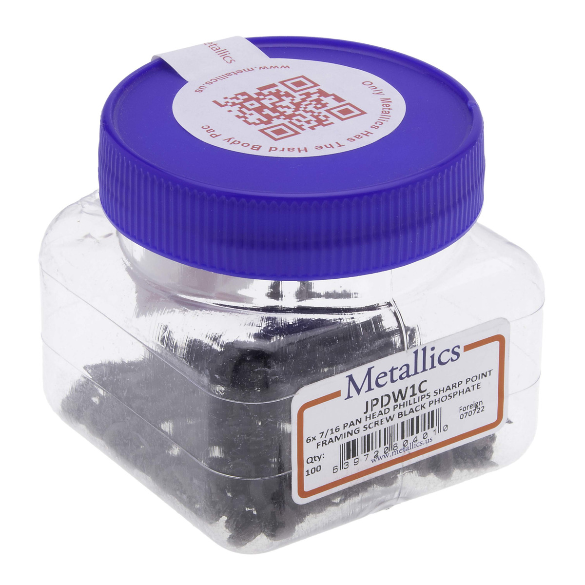 6 x 7/16 in. Pan Head Phillips Sharp Point Self-Piercing Framing Screws – Steel Black Phosphate – 100qty